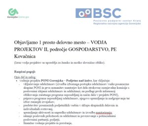 Objavljamo prosto delovno mesto – PROJEKTNI VODJA II