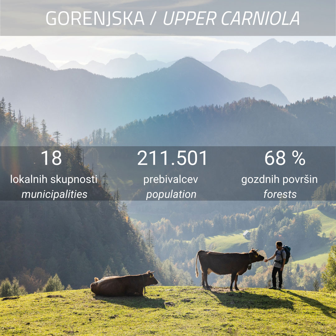 Gorenjska. Diverse scenery, an Alpine region with a distinctive cultural landscape and rich history. It is a region intertwined with natural and cultural heritage, small traditional crafts and modern, globally oriented companies. A green, connected and smart region, pleasant to live in and attractive to visit.