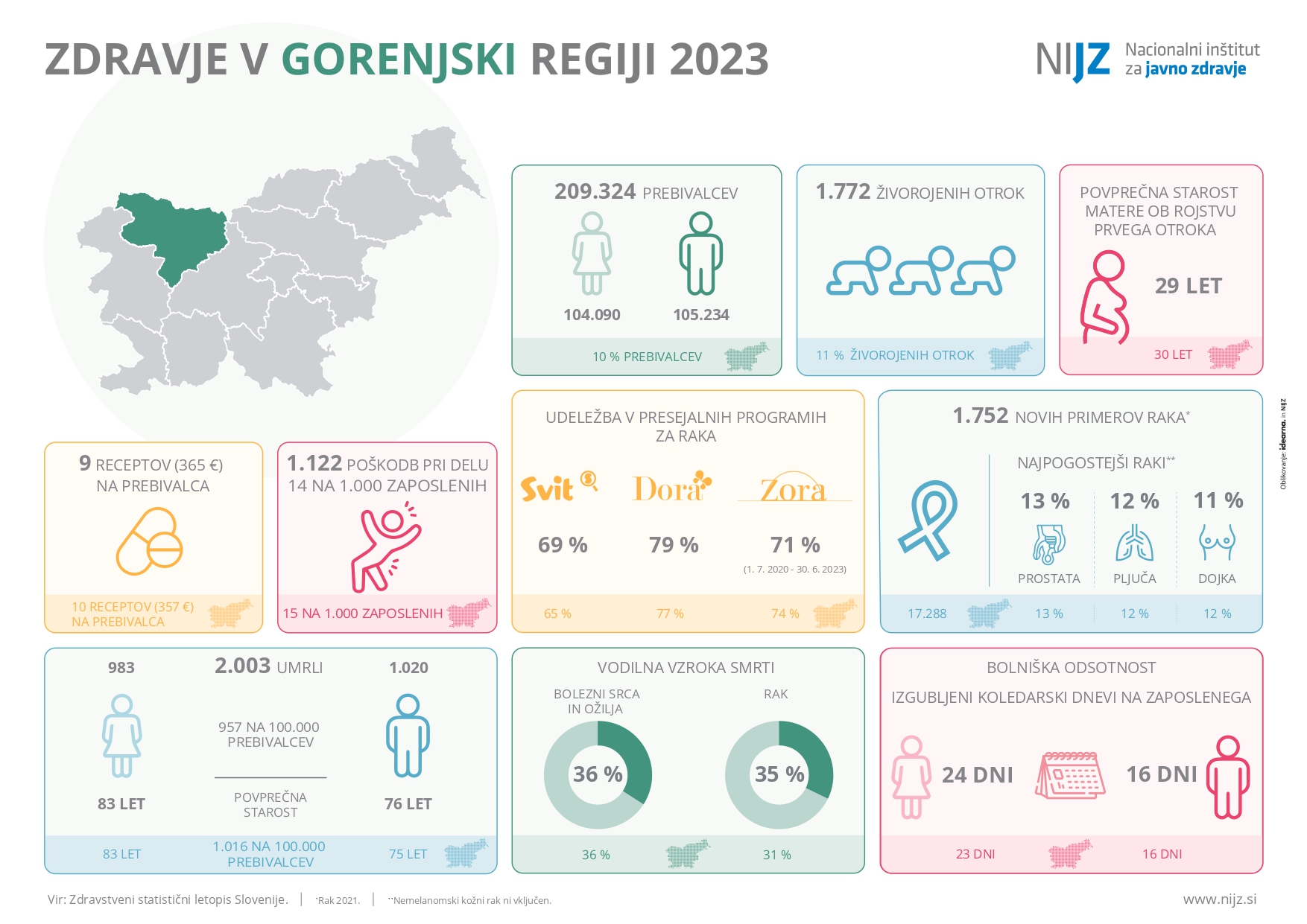 Zdravje v gorenjski regiji in njenih občinah s trendi in izzivi 2025