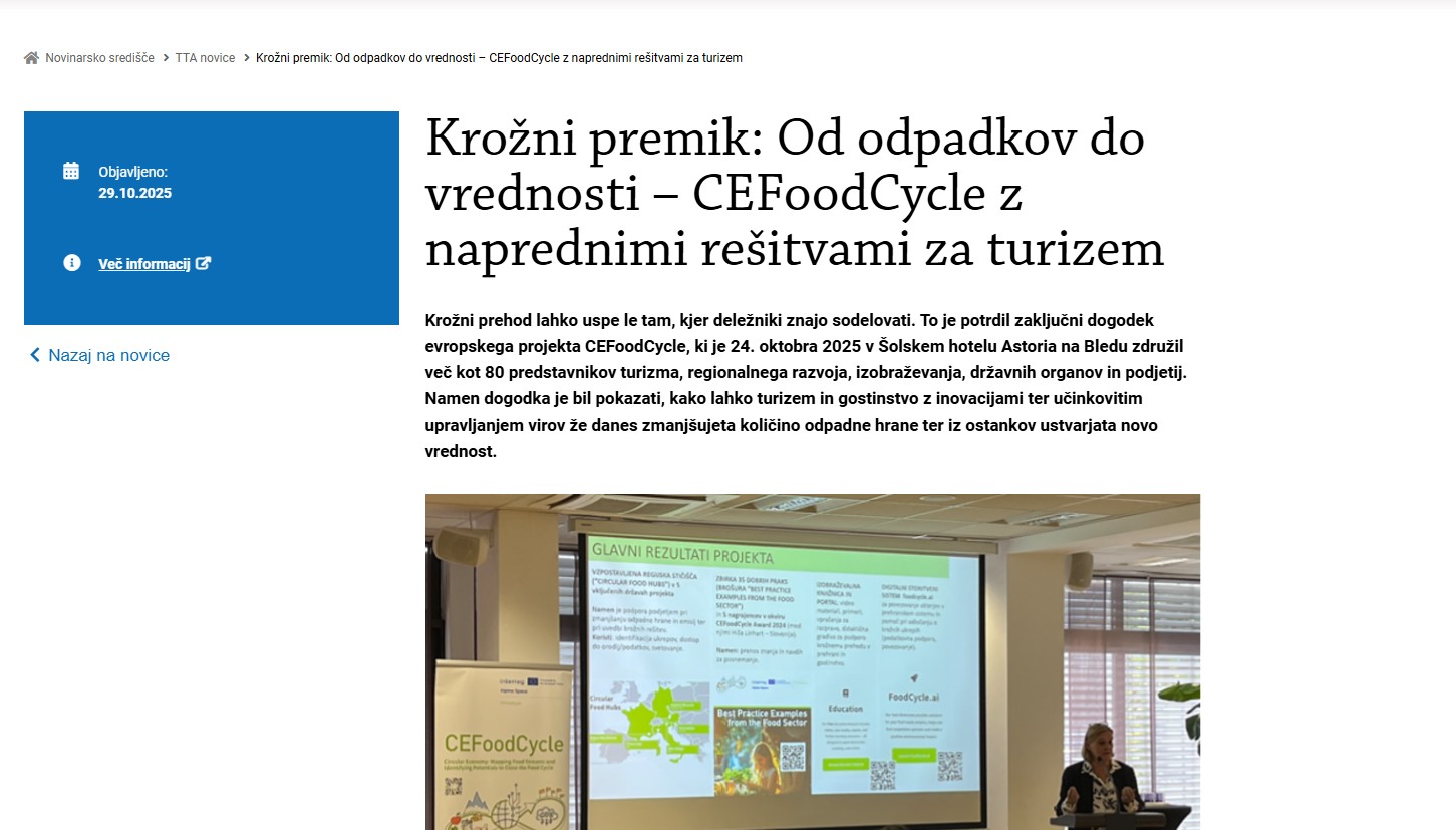 Krožni premik: Od odpadkov do vrednosti – CEFoodCycle z naprednimi rešitvami za turizem