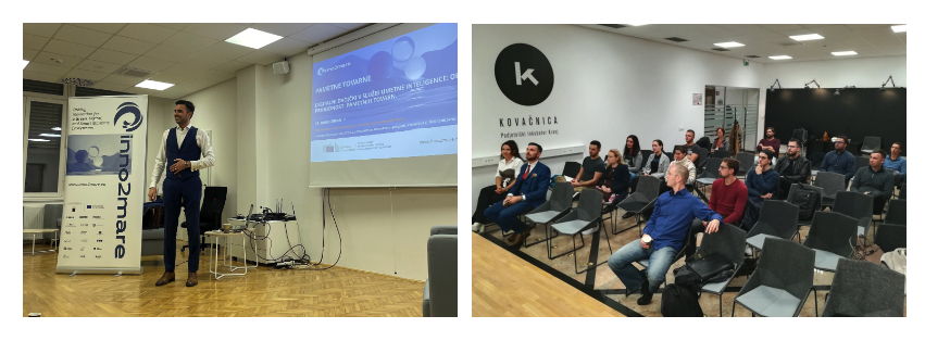 Na drugi delavnici smo gostili dr. Huga Zupana, direktorja podjetja Digiteh, ki je vodilno podjetje v Sloveniji na področju razvoja in implementacije digitalnih dvojčkov. Predstavil nam je koncept pametnih tovarn, ki postajajo vedno bolj pomembne in nujne, če podjetja želijo ohraniti konkurenčnost na globalnih trgih. Zaradi aktualnosti, pomembnosti, predvsem pa številnih nejasnosti v konceptih, pristopih in rešitvah v okviru pametnih tovarn, so raziskave na tem področju nujne in v zadnjih letih vse bolj številne tako v svetu, kot tudi v Sloveniji. S pomočjo digitalnih dvojčkov je omogočena hitra in učinkovita optimizacija proizvodnih procesov iz vidika postavitve resursov, materialnega toka ali avtomatičnega generiranja plana izvedbe naročil s pomočjo umetne inteligence in izvajanjem »kaj-če« scenarijev. Umetna inteligenca in digitalni dvojčki zasedajo osrednjo vlogo v inovativnih proizvodnih procesih in sistemih, kjer smo priča avtonomiji, ki postopoma nadomešča tradicionalno človeško vlogo in se povezuje z naprednimi digitalnimi platformami.